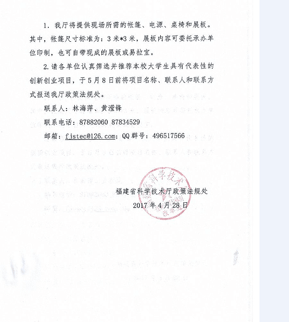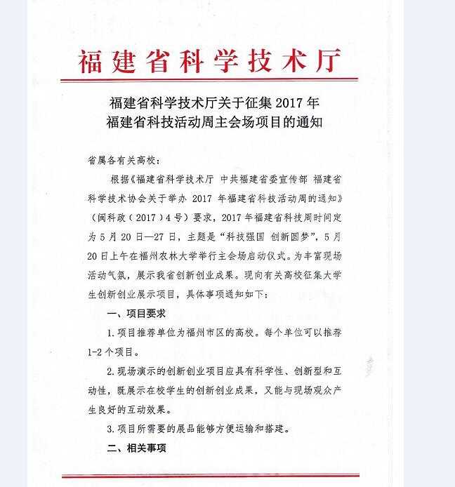 福建省科学技术厅关于征集2017年福建省科技活动周主会场项目的通知