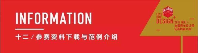 四、作品上传电子文稿格式及设计作品范例可参考查阅大赛官网 www.jajahome.com 或 jajahomeAPP 或 " 设计拍档 " 微信公众号中的参赛范例与展板版式参考页面。