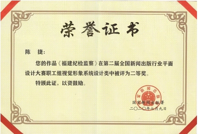 近日,由国家新闻出版署主办,中国编辑学会、北京印刷公司承办的第二届全国新闻出版行业平面设计大赛决赛落下帷幕。经过激烈角逐,公司陈捷老师设计的作品《福建纪检监察》荣获职工组视觉形象系统设计类二等奖。