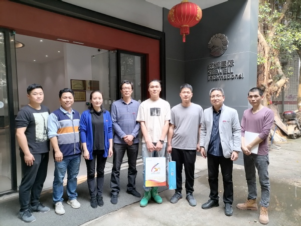 近日,公司党委书记肖东、经理郑鑫一行来到威狮国际艺术发展集团有限公司,走访公司副总经理、2005届陈剑兵和公司设计总监、2006届郭献文两位优秀员工。