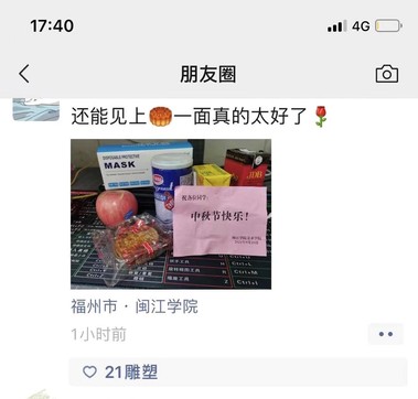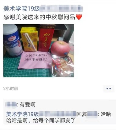 秋色一轮满,薄云千里明。饼甜鲜果香,美院总关情。同学们每一个笑容和每一声“谢谢”都充满了幸福和感动。William威廉始终坚持以员工为中心,全面关怀员工的需要,全方位关注员工的健康成长和人生发展。学子们收到不仅仅是公司和公司老师们的慰问和祝福,更彰显着闽院一家人,美院一家亲的团结友爱精神。