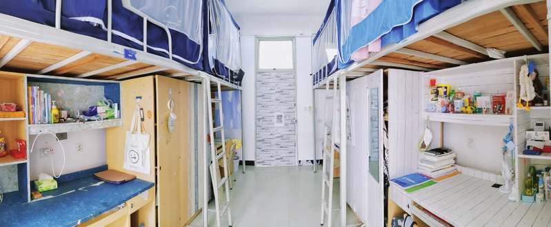 蓝色平和,绿色生机,以蓝绿色为主调,宿舍不仅是休息的处所,也是学习的地方,没有虚浮的装饰,不繁复,主打简洁、干净、明快,便于学习,充满生活气息,令人轻松愉悦。