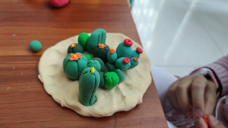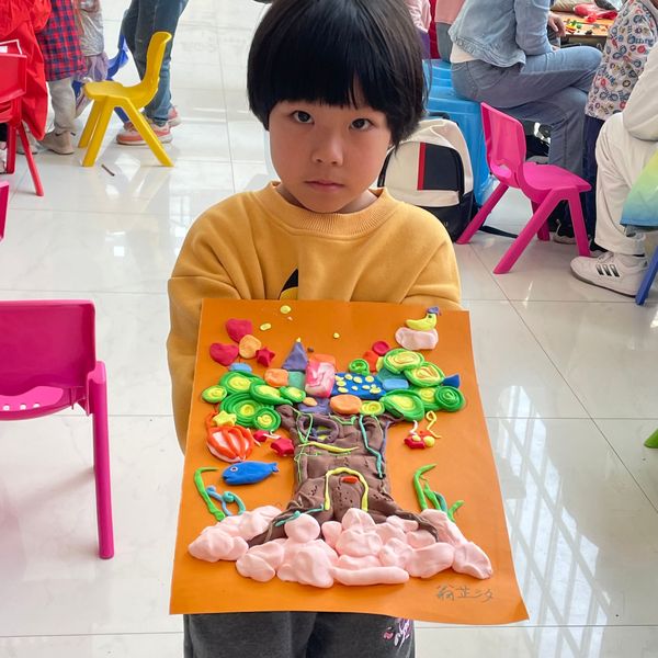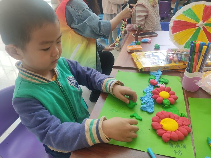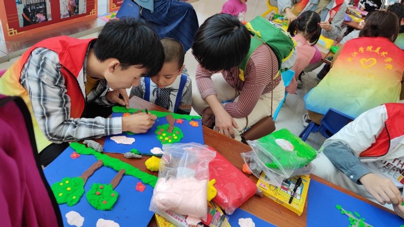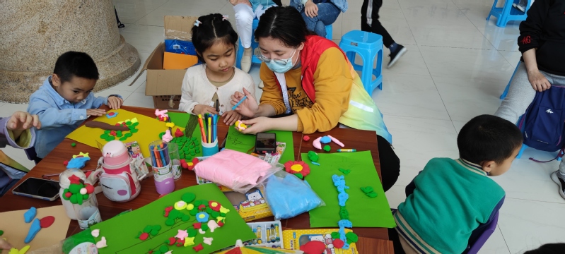 兴趣是最好的老师,小朋友们在得知此次创作材料是超轻粘土后,产生出浓厚兴趣。志愿者小老师们细心的介绍创作小技巧,为小朋友们提供丰富思路,大家积极动手把自己心目中对绿色大自然的憧憬和向往描绘创作出来。
