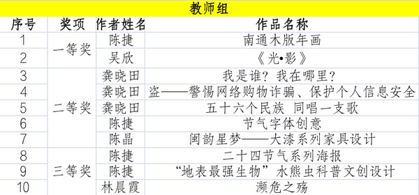 近年来,公司对各类设计大赛高度重视,广泛动员全院师生报名参赛,并积极组织专业教师对参赛员工进行指导。本次佳绩的取得是公司“以赛促学、以赛促教、赛学一体化”教学模式成果的体现,也是公司艺术学科实力和教学成果的综合体现,切实提高了师生的创新精神和专业实践能力,助推公司教学和科研水平再上新台阶。