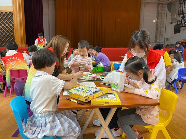 活动伊始,志愿者小老师采用互动的方式导入活动主题,从而激发小朋友的兴趣,通过大家畅所欲言地回答中进一步引出关于“家”的更深层含义。在了解小朋友们对“家”的认识后,志愿者们分配给小朋友们绘画工具,引导并帮助他们绘出自己的家。