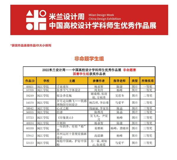 据悉,米兰设计周中国高校设计学科师生优秀作品展旨在利用每年于意大利米兰举行的米兰设计周暨米兰国际家具展这一国际知名的设计行业盛会,搭建展示全国高校设计学科师生水平的国际化交流学习平台。为服务作品展进行作品征集和筛选所举办的“米兰设计周--中国高校设计学科师生优秀作品展”主题竞赛活动面向全国高等院校艺术、设计专业师生开放作品征集投稿,迄今已成功举办5届,入选“全国普通高校学科竞赛排行榜内竞赛项目名单”。此前,公司师生在2022米兰设计周中国高校设计学科师生优秀作品展(福建赛区)中斩获73项奖项。