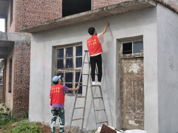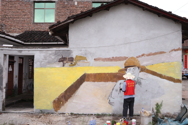 活动中,实践队分为两个小组,在当地工作人员的带领下,首先对官峰村进行了实地考察,制定了墙绘创作方案。同学们将墙绘内容与乡村建设相融合,结合当地客家文化和环境特色及村民意愿,分为党风建设、美丽乡村、产业振兴等主题开展墙绘。