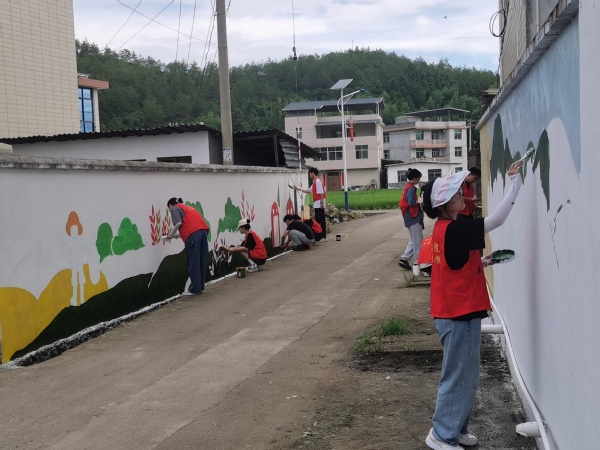 手绘墙体,需要扎实的美术功底,需要一双美的眼睛和呈现美的双手。实践队员们集思广益、同心协力,凭着不怕苦、不怕累的精神,将所学专业知识应用于墙体彩绘创作,以一墙一主题,一巷一景色,利用村内显眼空置的墙面,精心设计、潜心创作,大家拿起手中的画笔,从起稿到上色再到细节完善,努力画就令人满意的墙绘作品。