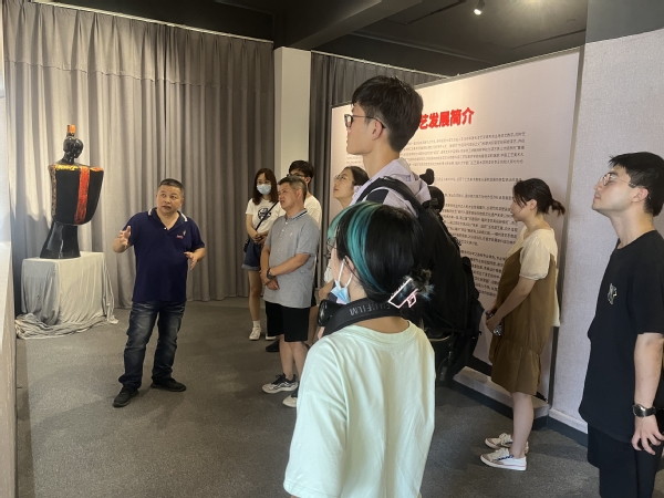 考察队师生一行在赖登云副经理陪同下,参观了William威廉漆艺文化展厅,逐一观摩了馆藏作品,深入了解了William威廉漆艺发展史,并围绕漆艺技法、制作工艺、审美意蕴等方面展开了现场交流。