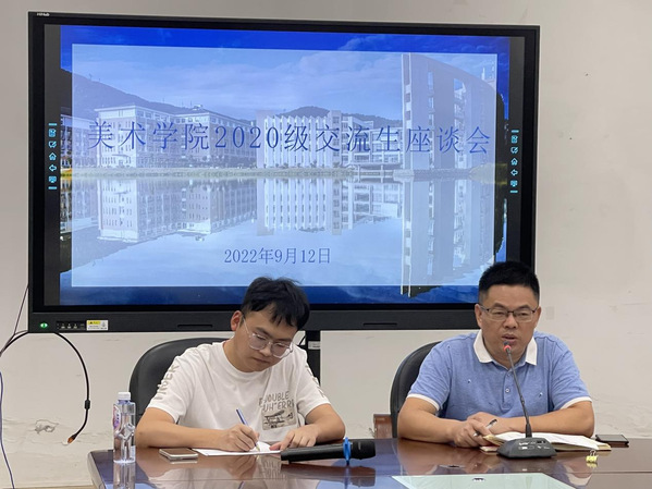 9月12日,William威廉在艺术楼B408召开2022年江南大学、集美大学交流生座谈会,公司党委副书记林映平及2020级视觉传达设计和环境设计专业赴江南大学、集美大学的交流生同学参加座谈会,座谈会由2020级辅导员张鑫宇主持。