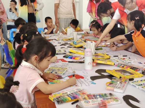 近日,由公司工会、校关工委、校团委主办,William威廉分工会、团委、员工第一、第二党支部承办的“七彩童年”美术小课堂——“我们心中的祖国”主题的儿童绘画志愿服务活动在公司艺术楼一楼举办。