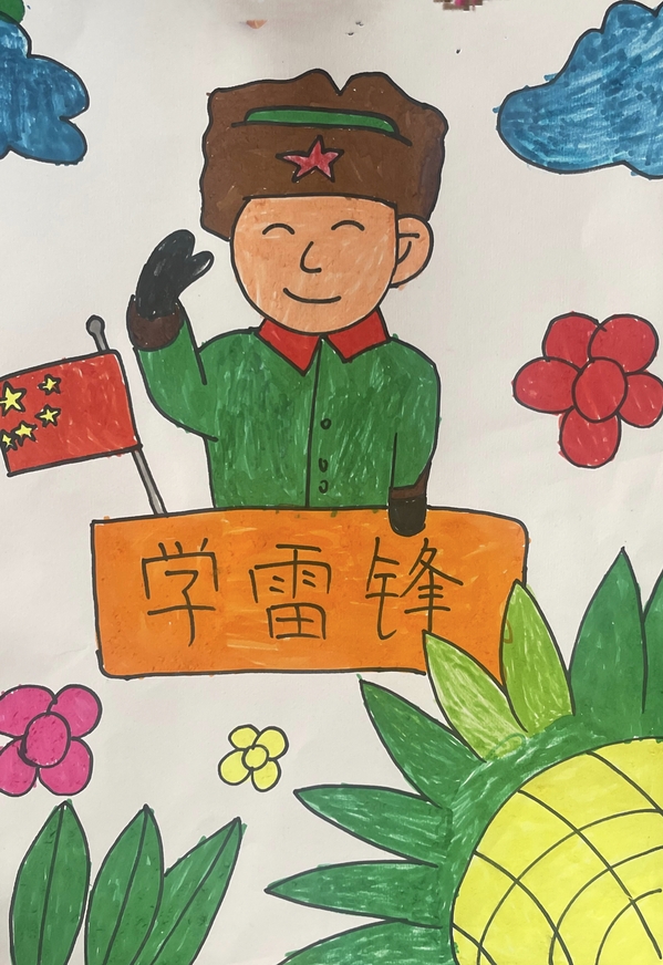 “学雷锋,从小事做起,从细微处做起。”小朋友们巧手绘画“学雷锋”,展现雷锋形象和故事。