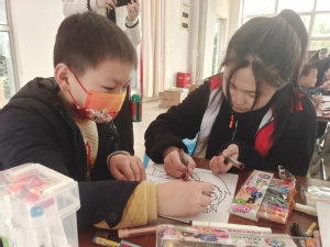 创作过程中,志愿者和小朋友们相互交流,一幅幅设计新颖、图画生动的作品,有介绍雷锋事迹的,有描绘雷锋肖像的,有展现新时代雷锋形象的。通过绘画作品,展现“雷锋”就在我们身边。