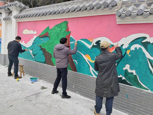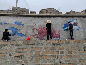 两天的墙绘实践,实践队成员克服了低温、大风和下雨等挑战,专心致志,潜心创作。在师生的共同努力下,一幅幅美丽的画卷“跃然墙上”,实现白墙换“新颜”。“墙上的海洋动物很贴合我们当地的海岛风光,画得真像呀”,路过的当地居民驻足称赞道。