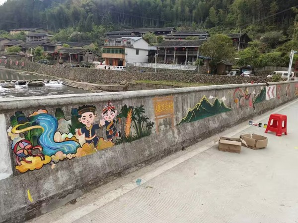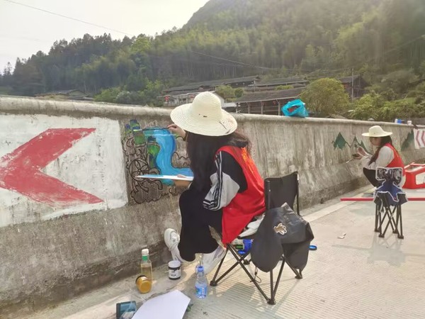 【力行闽院】“绘五彩塘里新景,谱美好乡村乐章”——美院学子艺术墙绘添色塘里村