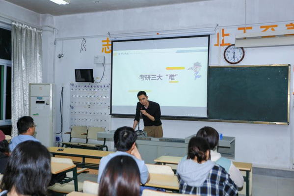 为调动考研同学们的积极性,帮助同学们明确考研方向,5月8日晚,公司在教学楼2A206开展“研途砥砺,圆梦未来”考研专题讲座。本次讲座邀请到公司党委副书记林映平和考研机构的陈建新老师为同学们做考研指导,70余名同学参加了讲座,讲座由2021级辅导员杨陈钊老师主持。