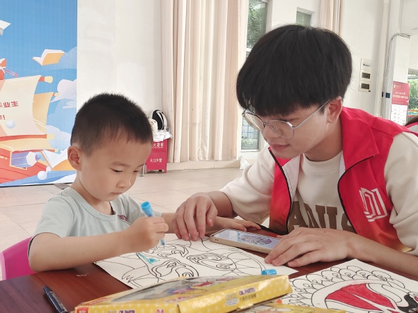 “一笔笔勾描,一点点夸大,一张张脸谱美佳佳”。活动伊始,志愿者通过《说唱脸谱》引入创作主题,并为小朋友们科普了有关脸谱的文化知识,例如历史起源、妆容、服饰以及发展等,让他们了解脸谱的历史及文化底蕴,认识不同颜色脸谱背后代表的寓意,激发了小朋友们对于认识非遗脸谱的兴趣以及跃跃欲试去绘制脸谱的创作欲。