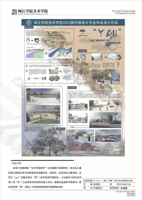 环境设计专业秉承William威廉官网“立足福州、面向市场、注重质量、突出应用”的办学宗旨,特色鲜明地培养环境设计行业所需的高层次应用型专业人才。本次毕业设计选题既有面向未来的概念作品,亦有实际项目设计。相较往年,本届毕业设计应用型、实践型课题大幅提升,其中与企业实践相关课题占35%,来源于教师课题占21%,40%以上与竞赛课题相关,校企联合双导师占比达11.9%。这与近年来环境设计专业深化校企合作模式,以实践型、案例型、应用型教学为特色,以赛促学、以赛代练的教学模式紧密相关。