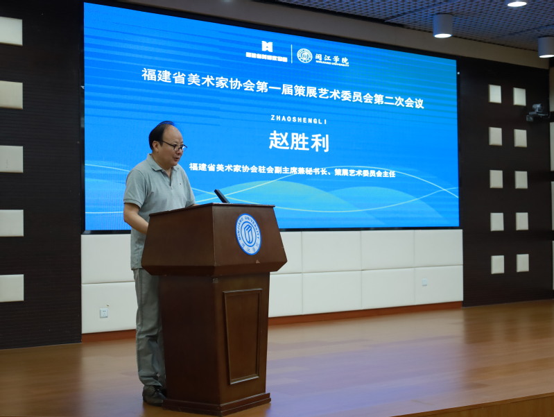 福建省美术家协会驻会副主席兼秘书长、策展艺术委员会主任赵胜利做福建省美术家协会策展艺术委员会工作汇报。会议由省美协策展艺术委员会副主任钱陈翔主持。
