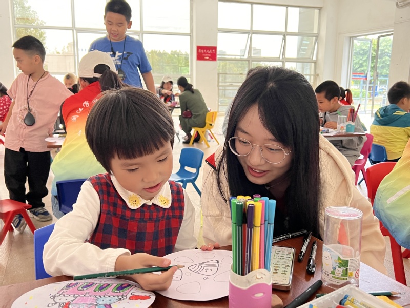 活动伊始,志愿者向小朋友们介绍了油纸伞的起源、制作工艺、特点传承价值。油纸伞使用历史已有1000余年,而后又衍生出许多不同的寓意,有如多子、多福、吉祥如意、金榜题名等,文化内涵丰富,是中国古人智慧的结晶。在志愿者的讲解下,让小朋友们对油纸伞有了更深刻了解,激发了小朋友对油纸伞”主题绘画的兴趣活动过程中,志愿者耐心讲解油纸伞的绘画技巧,介绍油纸伞的方方面面。小朋友们在志愿者的指导下发挥天马行空的构思,灵活的线条和多彩的配色描绘出他们心中最美丽的油纸伞,表达小朋友们对油纸伞的喜爱
