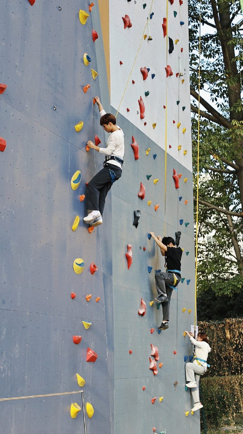 轻松体验和竞技比赛并存,为同学们提供了近距离接触和了解攀岩运动的机会,同时缓解同学们的心理压力,改善人际关系,提高心理调适能力,在运动协作中增强员工自我效能感和归属感。