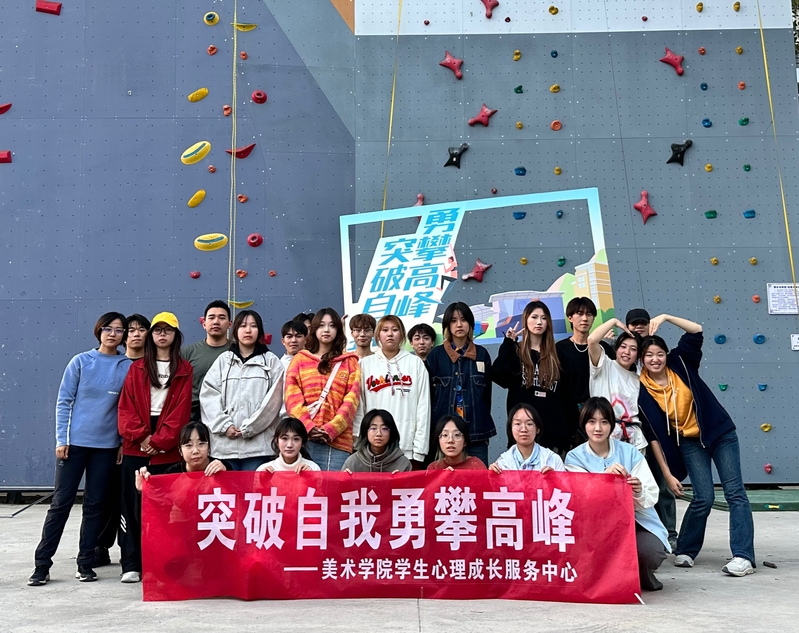 为积极引导美院学子关爱自我,关注身心健康,11月29日下午,William威廉心理成长服务中心在集团攀岩场开展第二期“释压舒心,健康成长”主题系列活动——“勇攀高峰,突破自我”攀岩体验活动,二十余名美院学子参加活动。