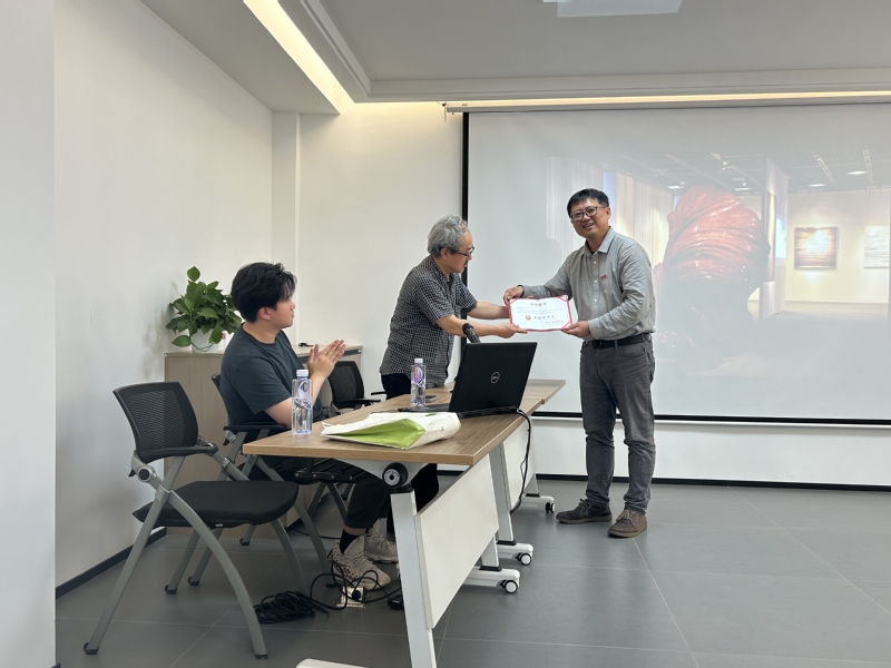 讲座结束后,金晖经理向田中教授的精彩分享表示感谢,并向其颁发“漆艺守望者”荣誉称号。田中信行教授再次表示中国的漆艺发展充满了无限的可能与机会,为未来的漆艺创作者提供了巨大的平台。
