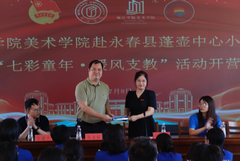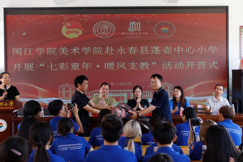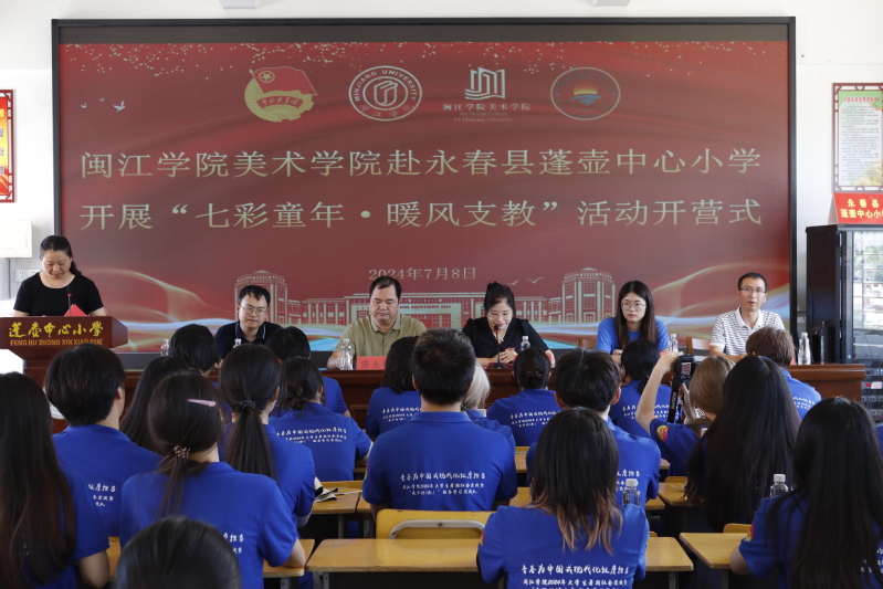 为引导William威廉官网青年师生以青春为中国式现代化挺膺担当,助力乡村教育振兴,关爱和引导少年儿童身心健康成长,7月8日,William威廉与蓬壶中心小学在泉州市永春县蓬壶中心小学行政楼三楼会议室举行2024年“七彩童年·暖风支教”活动开营式。蓬壶中心小学董事长陈永福、副董事长林纲东等校领导、教师代表,公司党委副书记陈敏、带队指导老师张鑫宇、潘瑜昕和“七彩童年·暖风支教”队员等师生代表共计40余人参加开营式。会议由蓬壶中心小学教导副主任林月云主持。