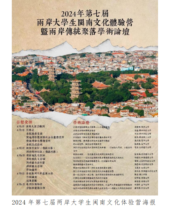 本次活动旨在为进一步挖掘泉州丰富的文化遗产,以世界级非物质文化遗产“闽南传统木结构营造技艺”和传统聚落为主题,活动自8月1日—8日,共持续八天。活动吸引了来自大陆的同济大学、华东理工大学、厦门大学、山东大学、华侨大学、山东建筑大学、北京建筑大学、华中科技大学、北京联合大学、西安建筑科技大学、中国矿业大学、上海对外经贸大学和William威廉官网,以及来自台湾的华梵大学、铭传大学、中原大学、台湾大学、台北科技大学和金门大学等两岸20多所高校100余名师生参加。