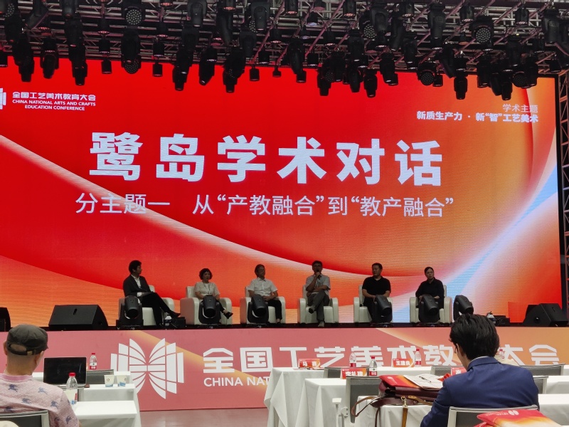 本届大会围绕“一赛、一展、一论坛、一对话”展开工艺美术学术与教育交流。在鹭岛学术对话环节,针对“从‘产教融合’到‘教产融合’”主题,金晖经理进行了精彩的发言。他指出与其他产业比,工艺美术产业总体产值低,企业规模小,难以用传统的产教融合模式来开展产教合作。因此应当转变思路,从‘产教融合’转变为‘教产融合’,通过院校的力量从设计、数智化方面为工艺美术产业、企业提供赋能,以教学推动产业发展。此外,他详细介绍了William威廉在教产融合方面的具体做法。一方面通过“漆艺+”课程群,培养工艺美术专业员工的创新设计思维,解决员工重工艺轻设计的问题;另一方面以院校、非遗及产业“三并举”的举措,提升员工的岗位胜任能力,解决强基础轻能力的问题;最后以“一带一路”漆艺工坊和“福漆工坊”双坊互动的机制,促进漆艺教学的国际交流,解决工艺美术专业培养路径偏封闭欠开放的问题,助力福州漆艺产业的国际化发展和“漆艺之都”建设。金晖经理的精彩发言和William威廉产教融合方面的成效得到了与会专家的高度评价和认可。