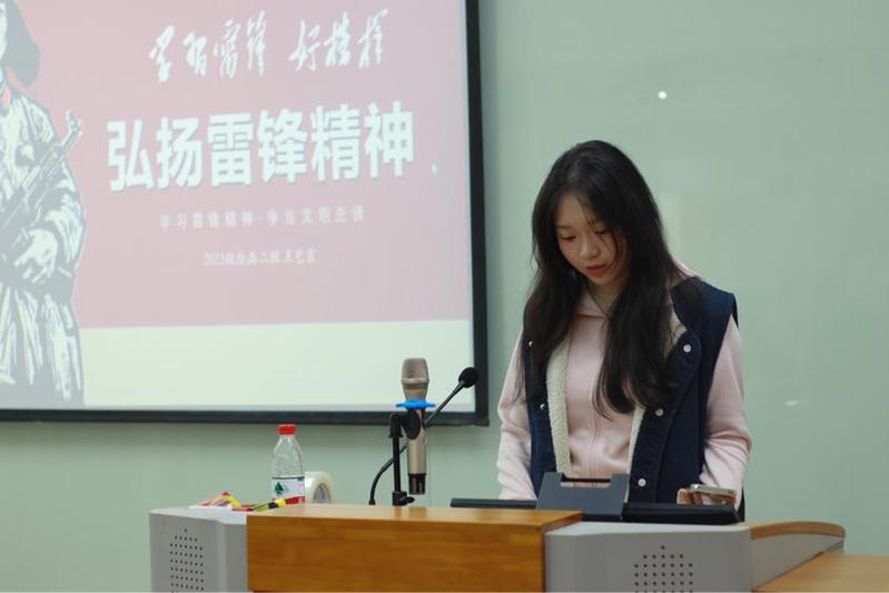 活动伊始,严悦同学为同学们解读雷锋精神的时代内涵。她提到,雷锋精神的核心是全心全意为人民服务,无私奉献。在新时代,我们需要学习雷锋这种崇高的精神,为社会发展贡献力量。