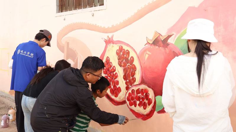 据悉,今年除墙绘实践外,公司还提供当地农产品包装设计、七彩假期支教服务。在完成玉海村主题墙绘后,公司墙绘实践队师生还将赴闽宁镇胜利乡完成百余平方“民族团结主题”墙绘,助力当地和美乡村建设。