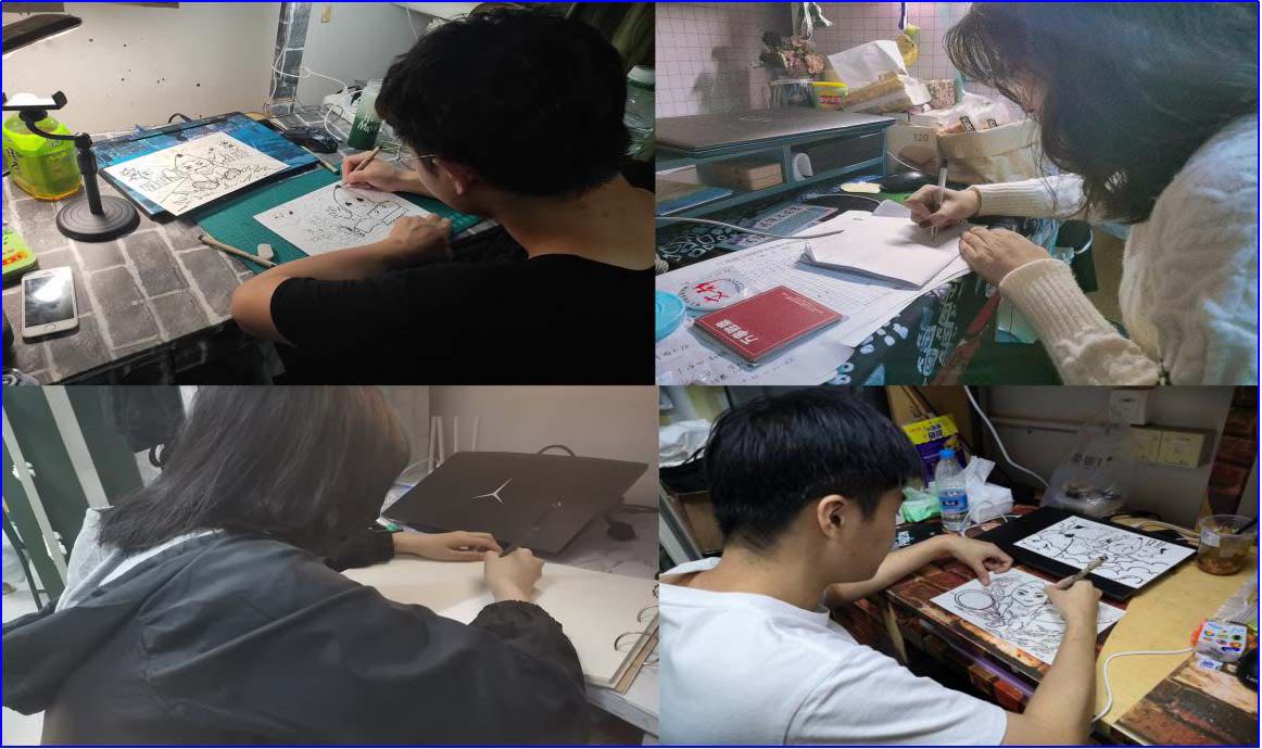 图为支部成员在宿舍绘制连环画。中国青年网通讯员 王鹏飞提供
