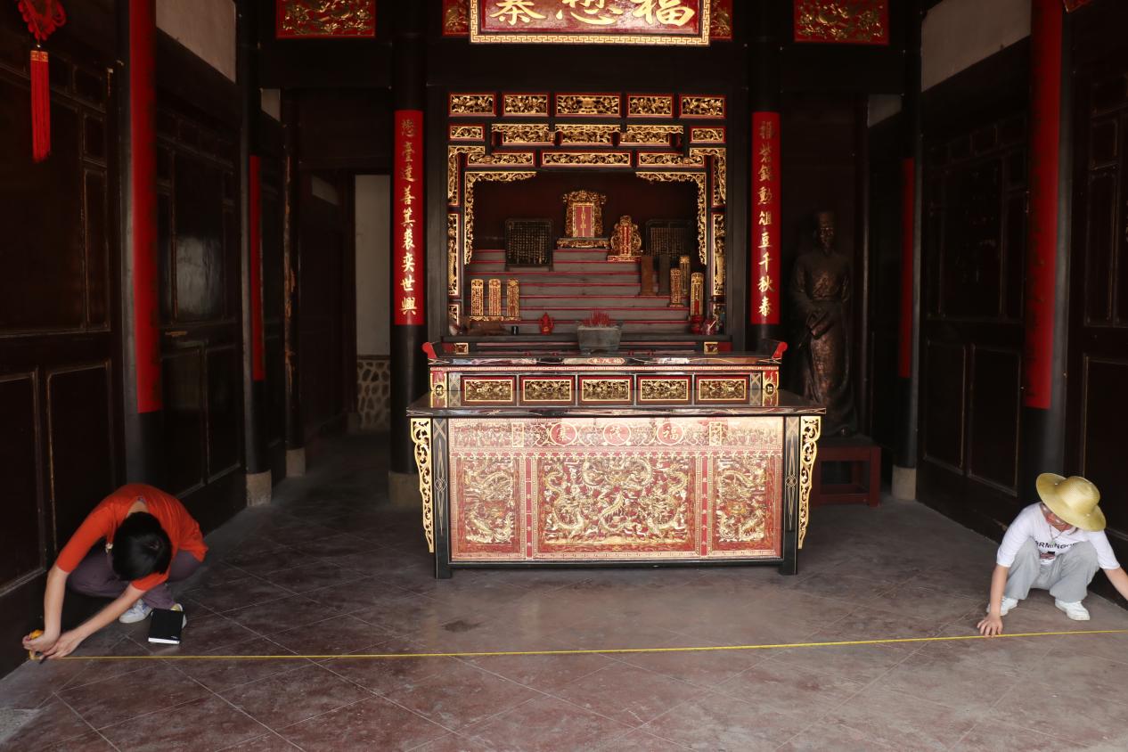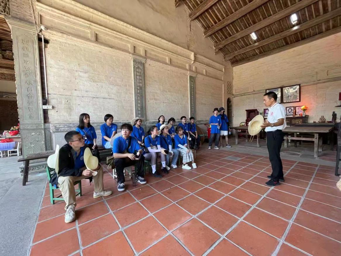 当天最后,实践队员来到了善福堂。“善福堂是清代例贡林培琛的居所。从地势上看:善福堂北门环山,山脉呈大鹏之势,鹏头正对善福堂大门;从布局上看:善福堂庭院具斗牛之象,广济桥正对牛鼻处,因此广济桥在当地又被称作牛鼻桥。”孙老师这样说道。在了解了善福堂奇特的地理位置后,实践队员吴琰泓提出疑问:“老师,古时候人们没有无人机之类的科技支持是如何知道整个山脉的布局呢。”“这就是古人的伟大之处,他们利用风水学说勘测地理位置,确定住宅地基,这四面环山的善福堂其中就蕴含着无穷的智慧。”孙老师向实践团队讲解道。除了布局在建筑工艺上善福堂也匠心独运,使用了当地特殊的“剪瓷”技艺,墙壁上一柄方天画戟贯穿金瓜石雕,称为金瓜抱子,寓意子孙绵长。