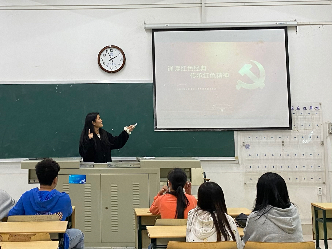图为团支部团支书为大家分享红色书籍 中国青年网通讯员 吴语萱 供图